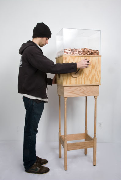 En tournant le levier, cet homme peut obtenir un penny toutes les 4.97 secondes, gagnant ainsi le salaire minimal horaire dans l’état de New York (7.25 USD / h)