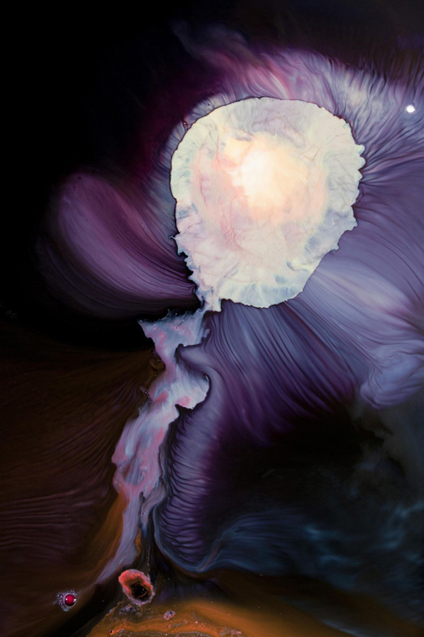 Leur projet Aether (éther) est lui particulièrement abstrait. Il s’agit ici d’un travail mêlant peinture, chimie et photographie. On est dans un entre deux mondes où notre sens de la vue est livré à lui-même. On s’émerveille alors des couleurs, des formes et c’est à nous de chercher le sens de ce projet, si tant est que nous en voulions un.